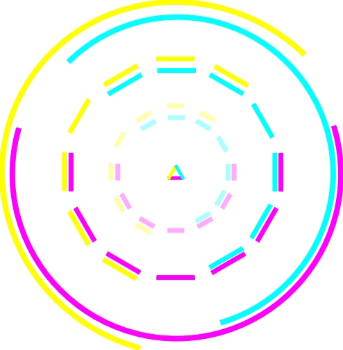 | Image 4: Prism Circle Tool After "prismizing" the colored circles below, we see that the spectral colors are visible in various proportions. Notice the changes in primaries as we move around the circle and how the primary values change in the interior of the circle as each color gets lighter. (Please note that the illustration is just an approximation of what we actually see. Only by using a prism on a diagram such as this can you get a true sense of the proportional primaries.)