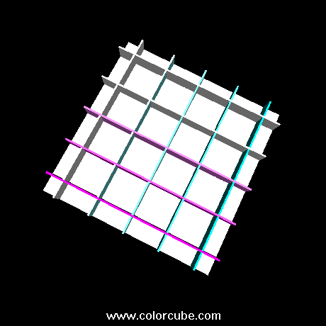 | Recognizing cyan, magenta and yellow (CMY) as the primary colors of the subtractive system, this screen saver encompasses the basic fundamentals of all COLORCUBE technology. Each of the colors seen here are the result of different combinations of these primaries. As the planes of CMY gradually convert to cubes, see how COLORCUBE coordinates can be generated for color mixing, color mapping and color space construction. |
